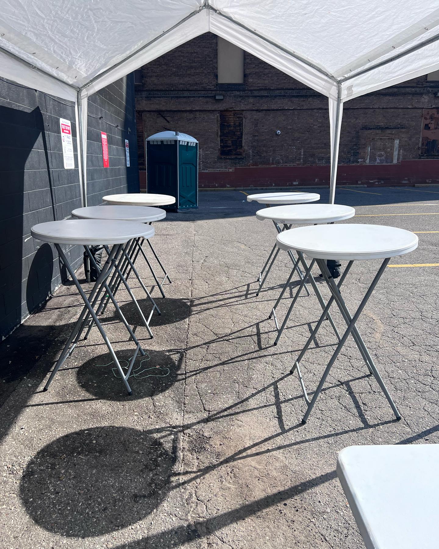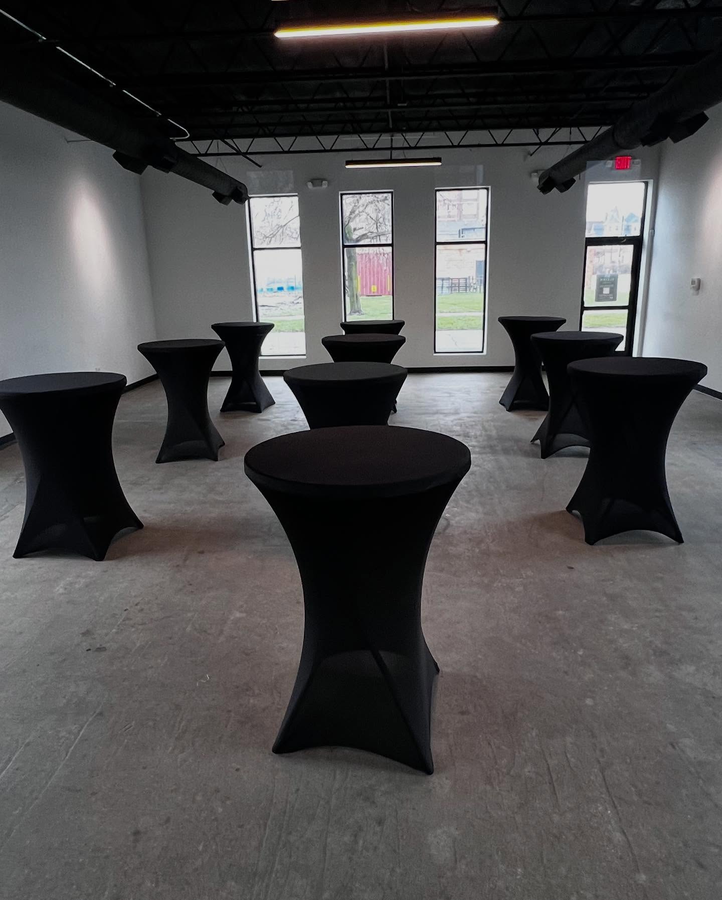 The Event Suppliers LLC has cocktail tables, ice tables, and 8ft tables for your food!