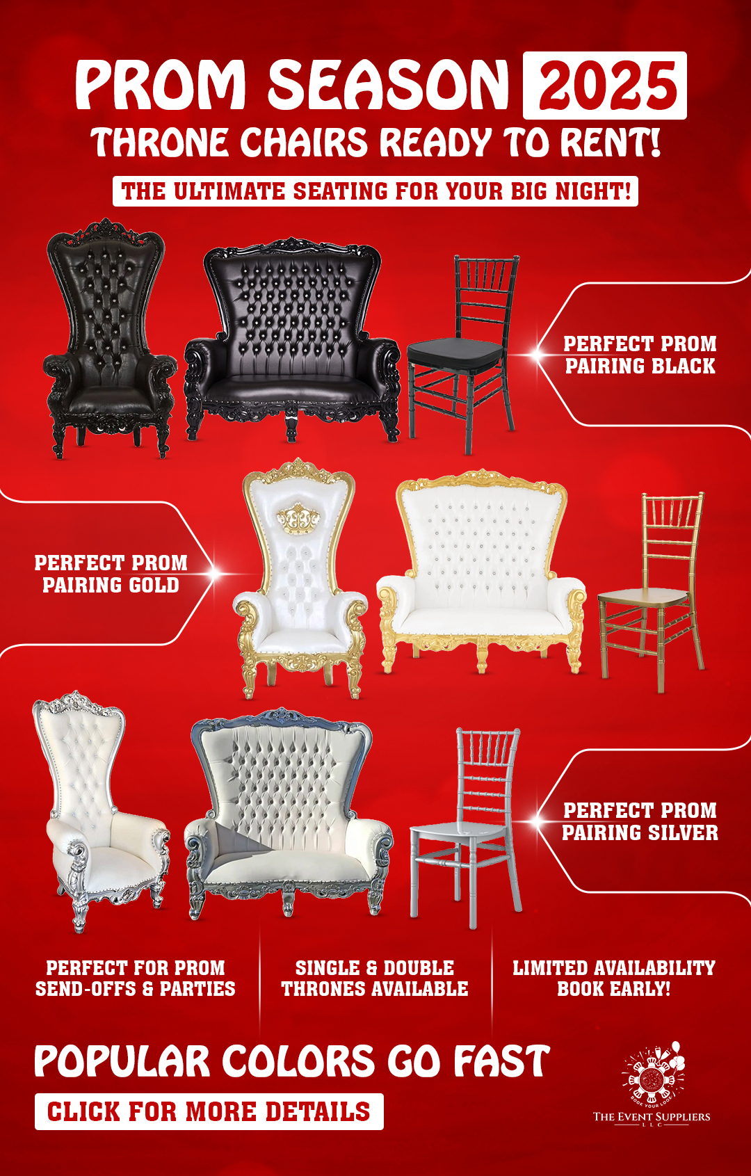 Discover the perfect throne chair to crown your event and create unforgettable moments. Visit our Throne Chair category to explore the collection and find the seat that will elevate your celebration to a level of elegance and splendor previously only imagined.