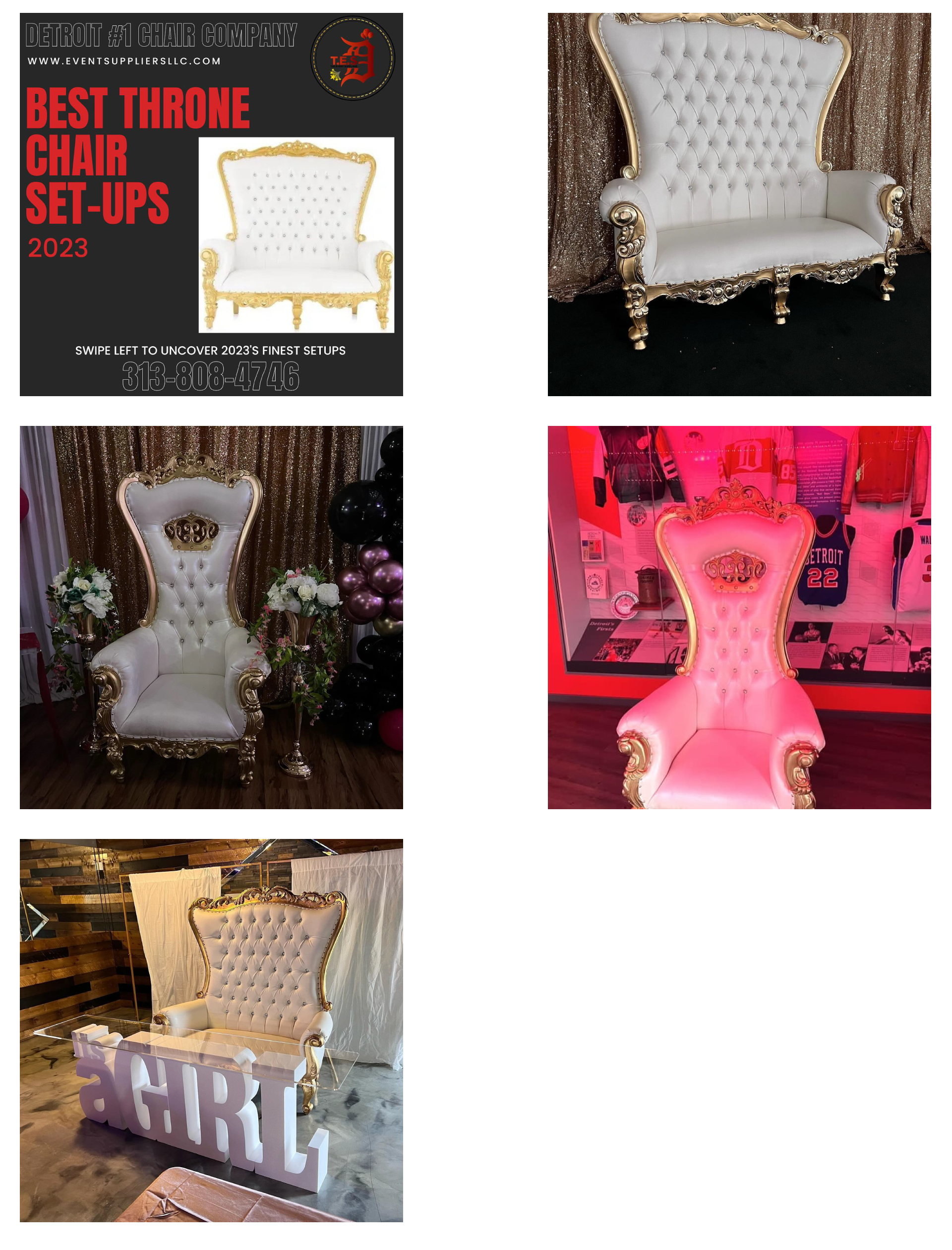 Continuing our showcase of the best setups of 2023, we’re excited to present the majestic Adult Love Seat: White & Gold. Priced at $250, this throne chair is a true showstopper for any event in Detroit.
