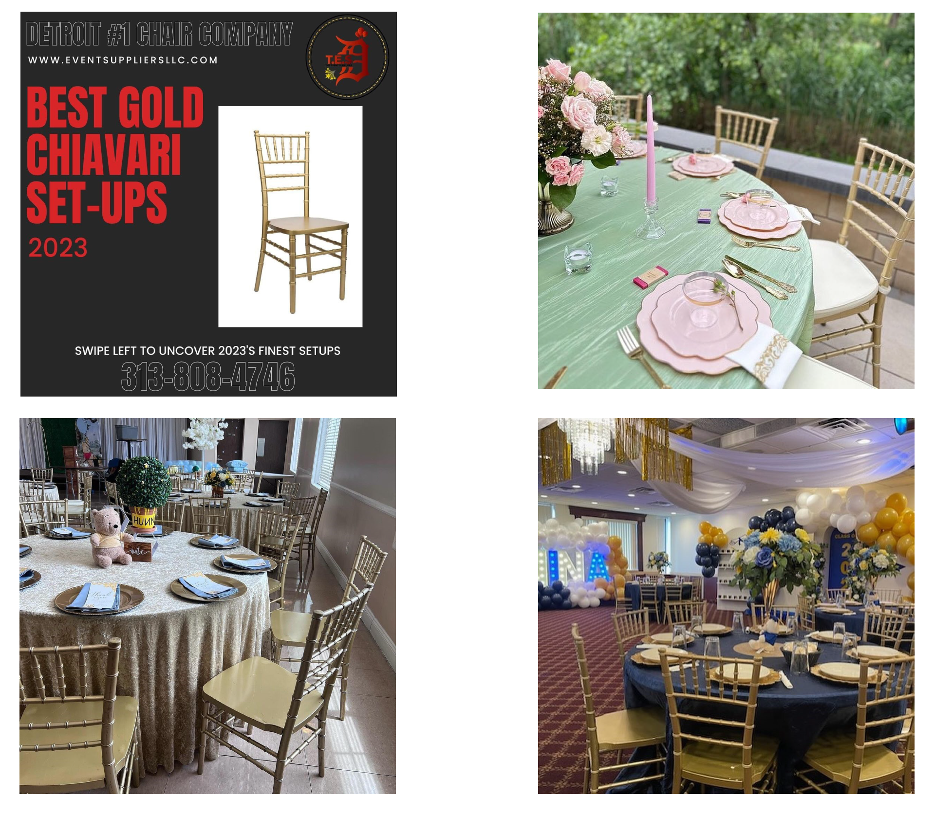 As we wrap up our series of the best setups of 2023, we’re proud to feature our exquisite Gold Chiavari Chairs. Priced at just $5, these chairs are a symbol of elegance and luxury in Detroit’s event scene.