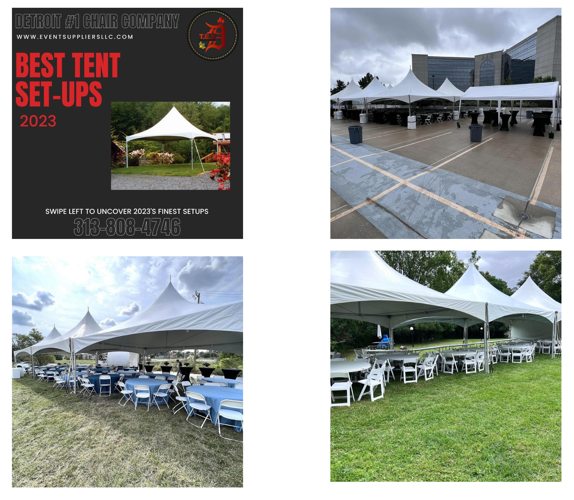 As we highlight the best of 2023, feast your eyes on our versatile 20x20 Frame Tent setups. Perfect for hosting up to 50 guests, these tents are not just shelters but style statements for any event in Detroit and beyond.