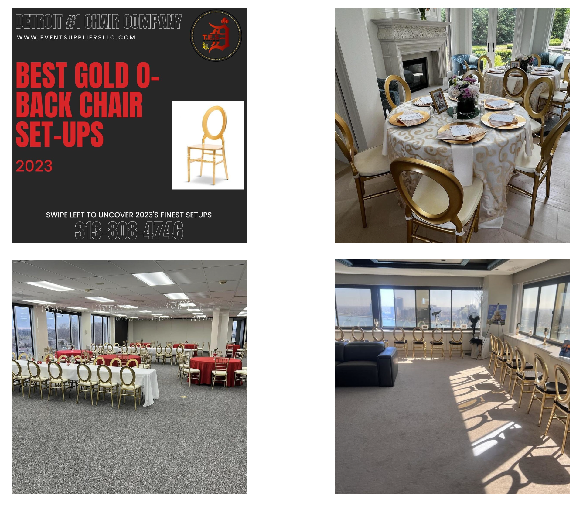 Today’s highlight in our best of 2023 series is the luxurious Gold O-Back Chair, a true embodiment of class and sophistication for any event in Detroit and surrounding areas. At just $6, these chairs are your gateway to upscale elegance without the hefty price tag.