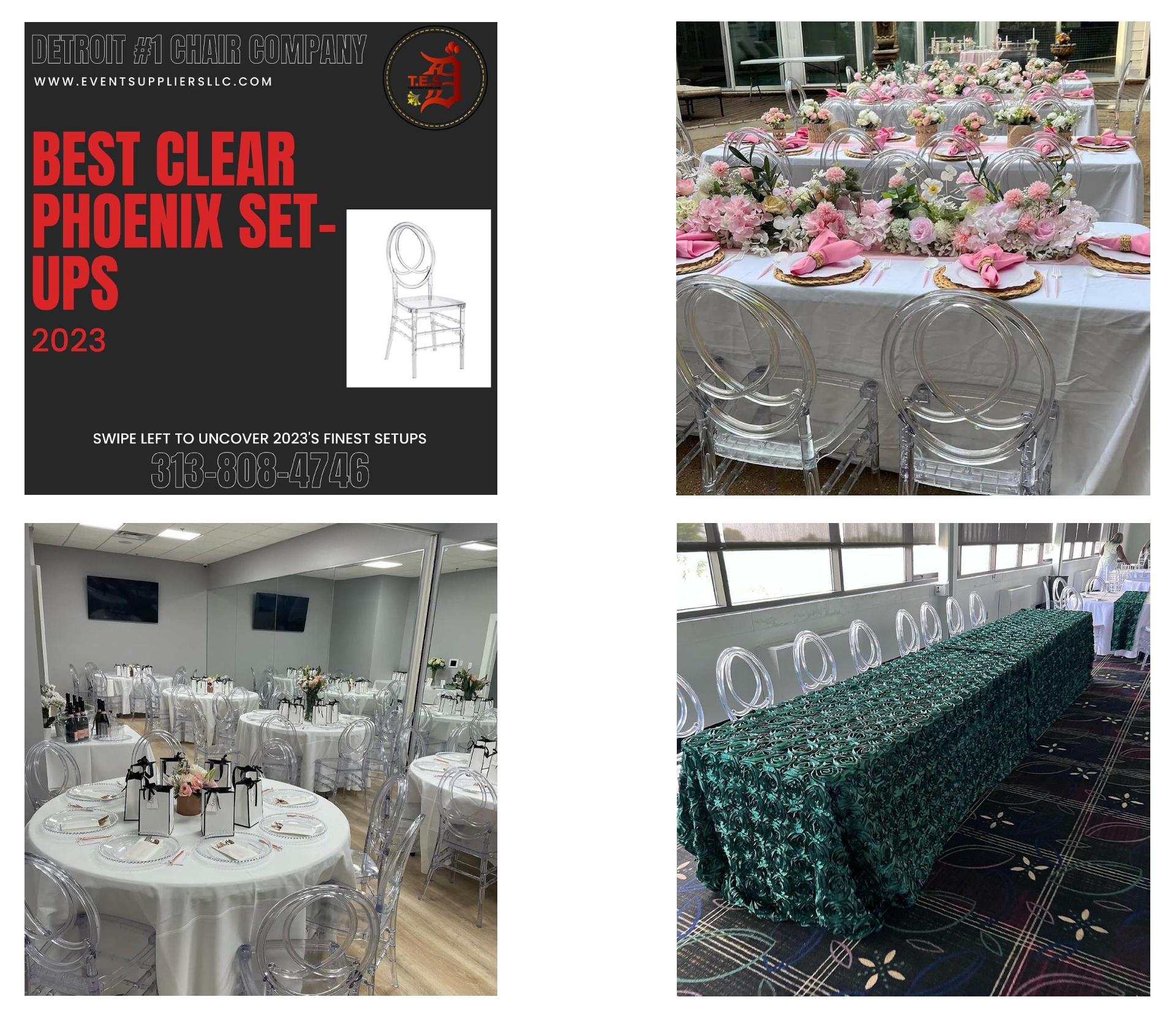 As we continue showcasing our best event setups from 2023, get ready to be dazzled by the chic and modern Clear Phoenix Chairs. These transparent beauties have been a game-changer in event styling, offering a unique blend of sophistication and contemporary flair.
