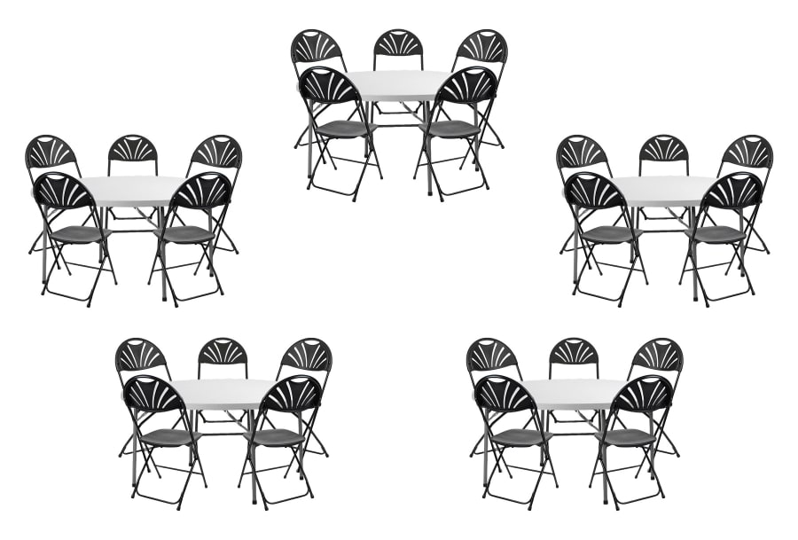 Planning a event in Detroit? ๐ Look no further than our expertly curated package that includes 5 48-inch round tables and 25 black fanback chairs. Perfectly designed to cater to your seating needs, this package is ideal for gatherings, parties, or corporate events. Let us help you create an unforgettable experience with our reliable and stylish seating solutions.