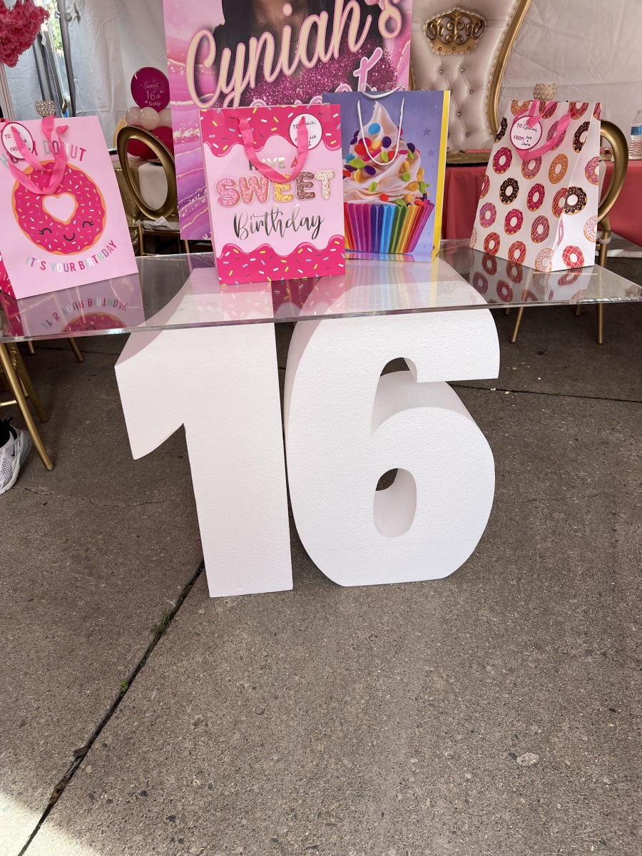 Elevate your event with our stunning 16 Letter Table in Detroit! Whether you're planning a sweet 16 party, a milestone birthday celebration, or any other special occasion, our customized letter table will add a touch of elegance and create a memorable experience for you and your guests.
