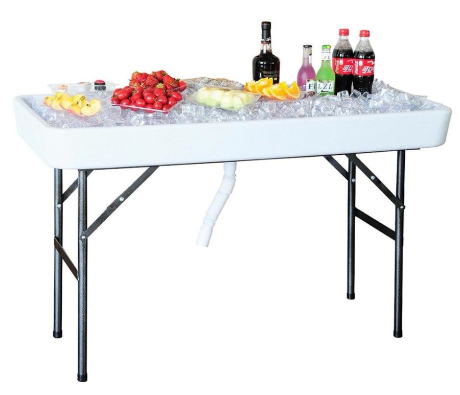 Introducing the ultimate Ice Table, designed to keep your drinks and chilled pasta refreshingly cool. Simply add a few pounds of ice, and its spacious depth ensures ample capacity for all your chilling needs. Elevate your next event with our rentable Ice Table - just "Fill-N-Chill" and let the good times roll!