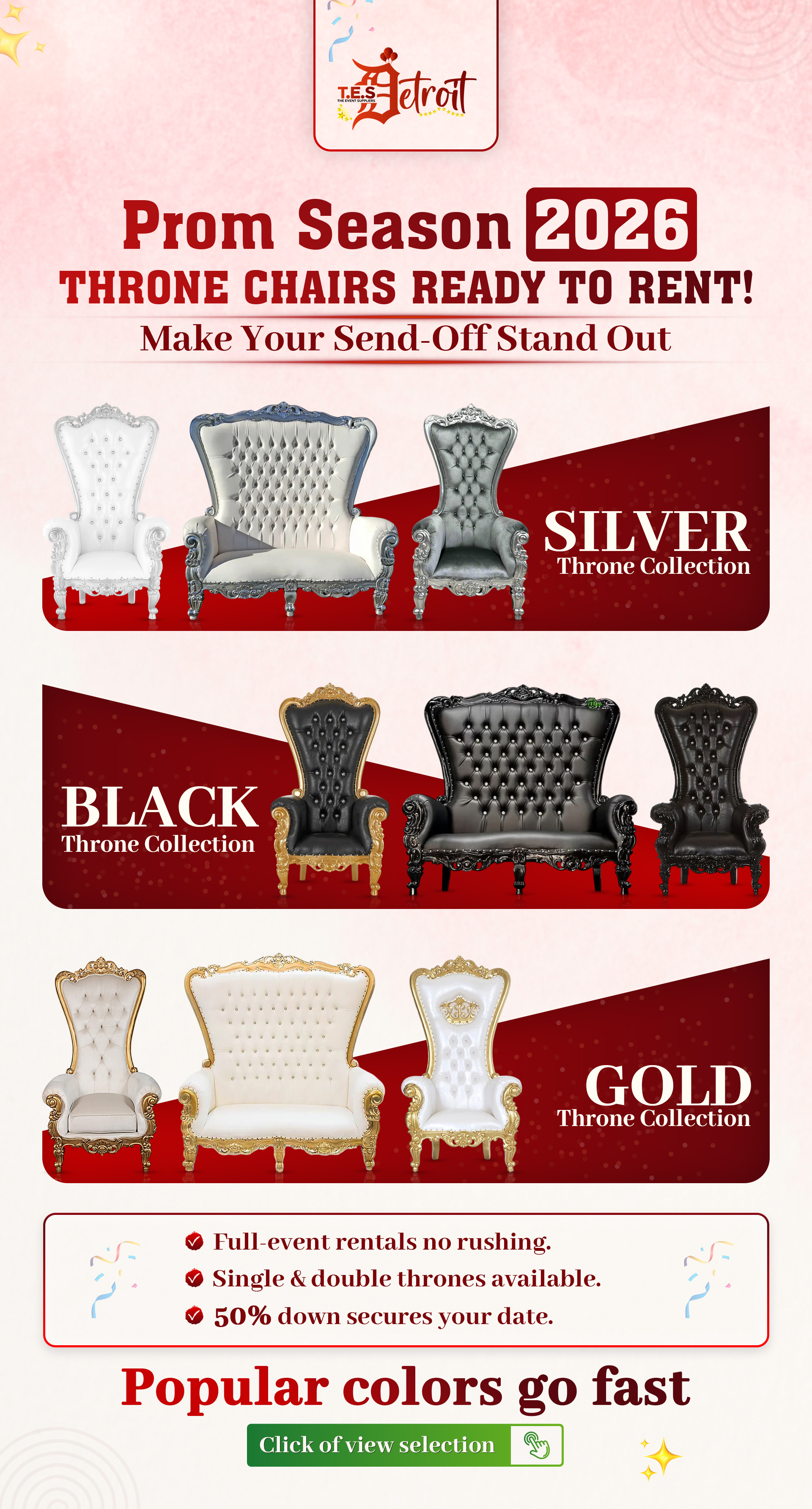 Discover the perfect throne chair to crown your event and create unforgettable moments. Visit our Throne Chair category to explore the collection and find the seat that will elevate your celebration to a level of elegance and splendor previously only imagined.