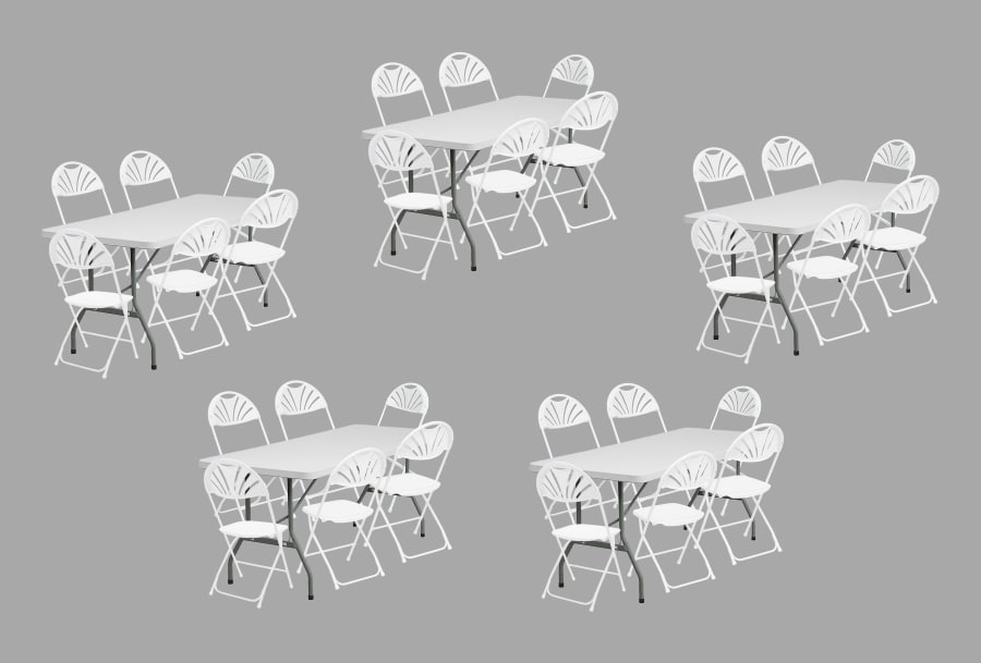 Planning an event in Detroit? Look no further! Our 5 Long Tables and 30 White Fanback Folding Chairs package is designed to meet all your seating needs with style and comfort. Whether it's a wedding, corporate event, or a family gathering, this package ensures a seamless and elegant setup. ๐ŸŒŸ