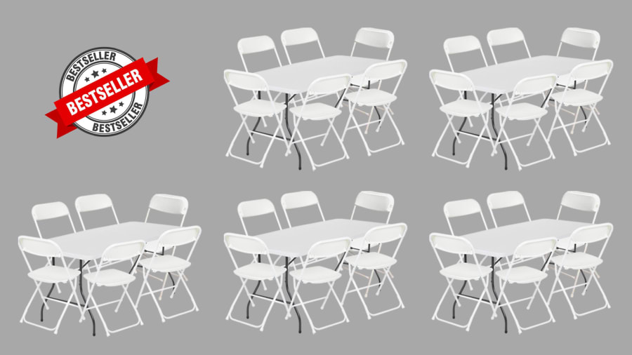 Are you planning a party with 30-40 guests and need a seating solution? Our package includes five long tables and 30 white folding chairs, providing a comfortable and practical seating option for your event.